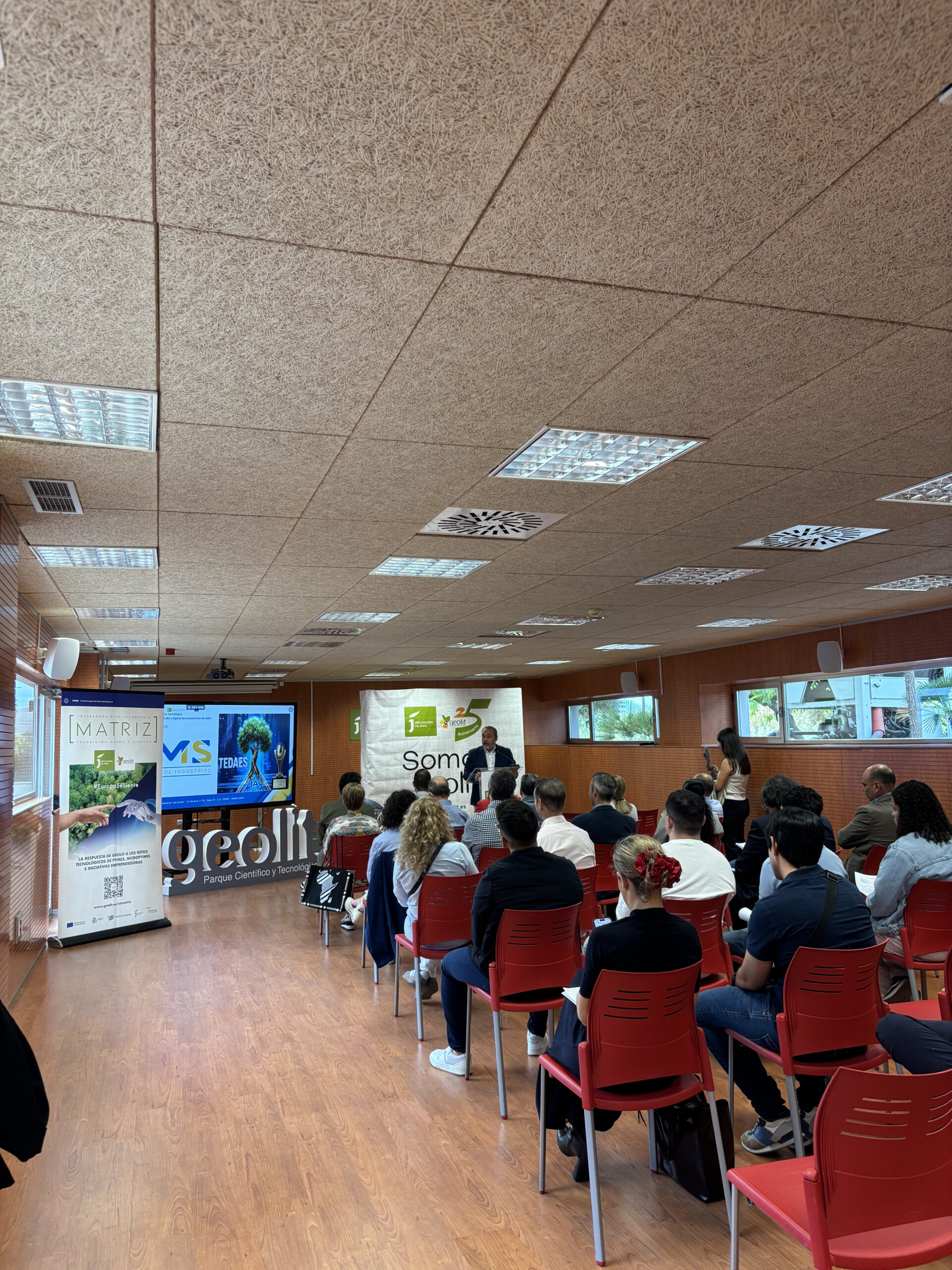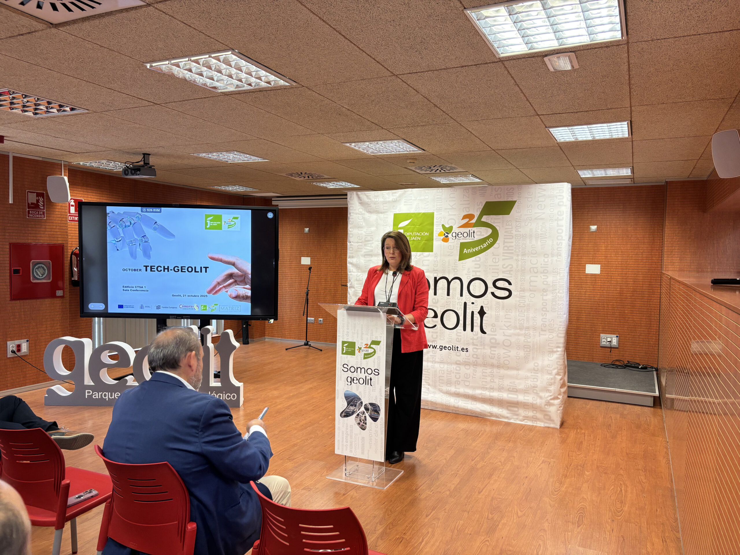 El Parque Científico Tecnológico Geolit de la Diputación de Jaén acoge hoy la jornada “October Tech”, una actividad que forma parte de la programación del 25º aniversario del parque, que invita a conocer los servicios y recursos que ofrece la Incubadora de Alta Tecnología IAT Matriz en la que se han invertido 3 millones de euros, cofinanciados con fondos FEDER en un 80% a través de un convenio entre la Administración provincial y la Fundación INCYDE. La diputada de Fondos Europeos y Geolit, Lourdes Martínez, ha inaugurado esta jornada de puertas abiertas que ha incluido una visita a los talleres y laboratorios de estas instalaciones.