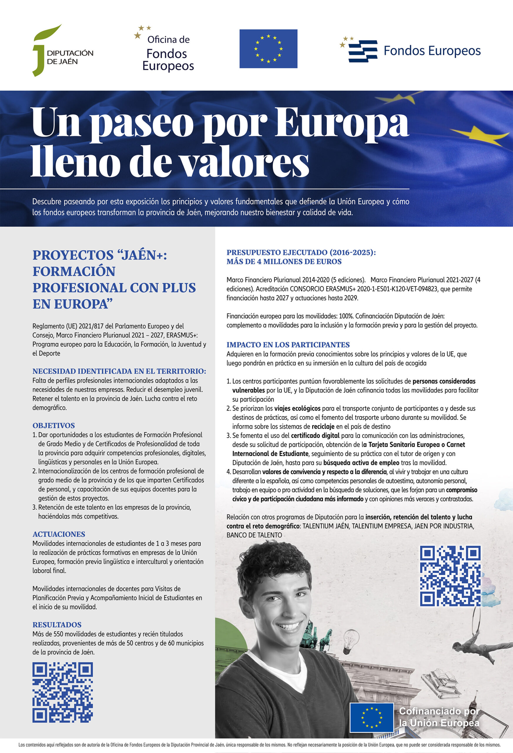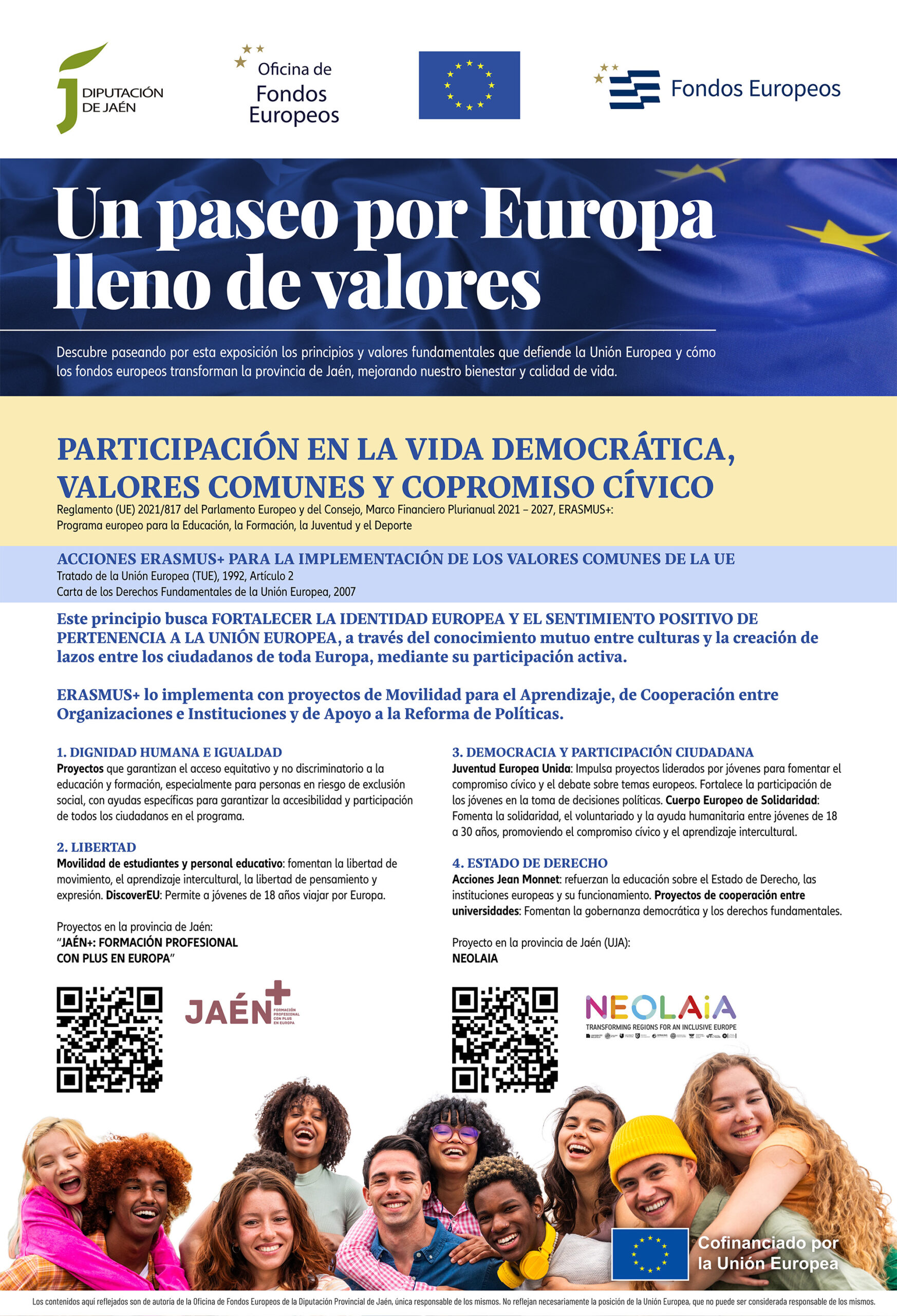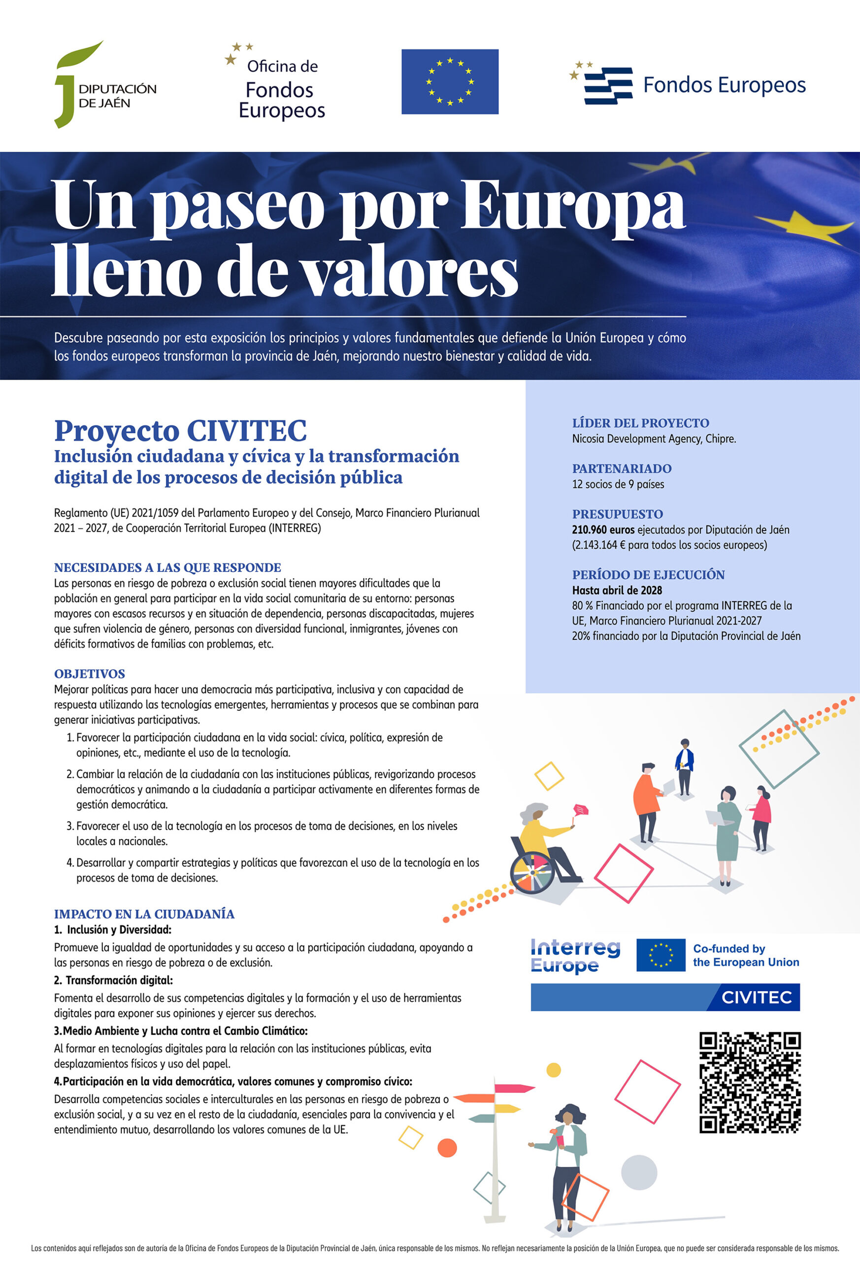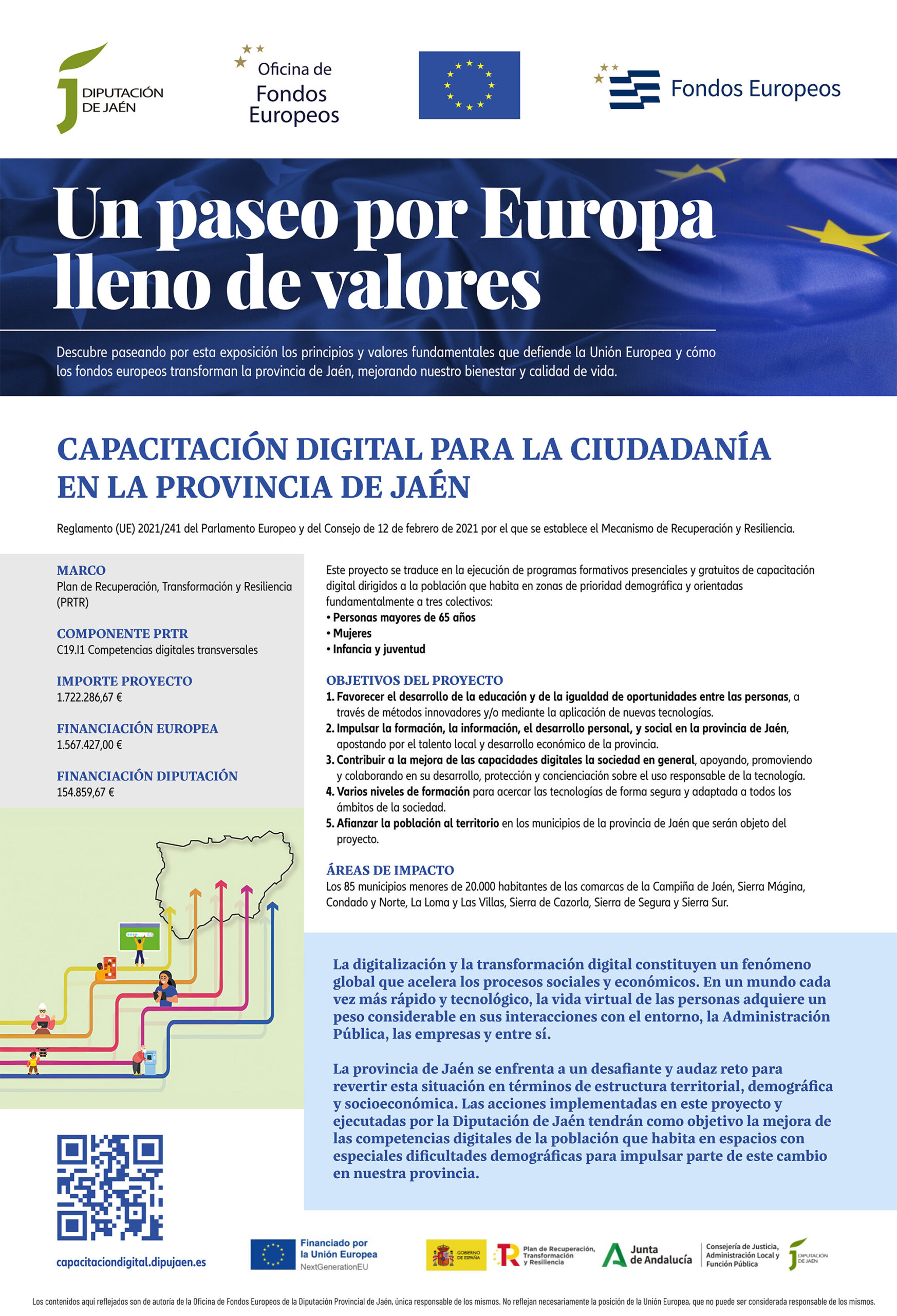 Descubre paseando por esta exposición virtual los principios y valores fundamentales de la Unión Europea y como los fondos europeos transforman la provincia de Jaén, mejorando nuestro bienestar y calidad de vida.